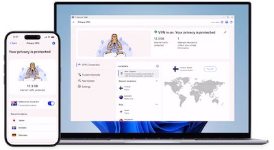 Med ett virtuellt privat nätverk, förkortat VPN, surfar du privat på nätet till exempel genom att dölja din IP-adress även för din internetleverantör. Men en VPN använder du även offentliga Wi‑Fi-nätverk säkert. När du använder en VPN går din anslutning först genom en VPN-server innan du ansluter till internet. På så sätt ser din fysiska plats och IP-adress ut som VPN-tjänsteleverantörens, inte din egen.