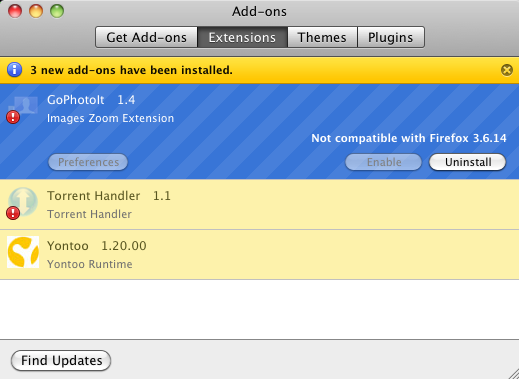 - Then remove the "GoPhotoIt", "Torrent Handler" and "Yontoo" extensions from your browsers, as seen in the examples below.