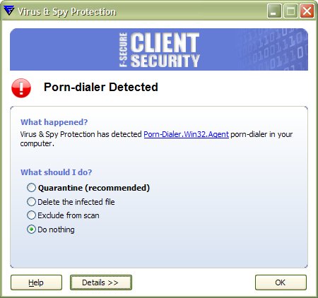 It has come to our attention that the 2007-06-19_08 anti-virus update falsely detects a few different files as Porn-Dialer.Win32.Agent or not-a-virus:Porn-Dialer.Win32.Agent.aw. This issue is resolved withDatabase Update 2007-06-20_03. Please update your software to download this version of the database release. We apologize for any possible inconvenience that this false alarm might have caused to our customers.