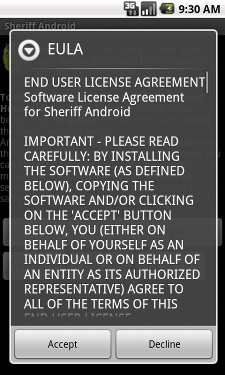 SheriDroid.A is advertised as an application that allows the user to perform certain activities using its monitoring and alarm setting features.