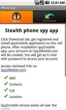 To use this application, the user must first installs SpyMob.A onto the targeted device, and register an account at SpyMobile.com