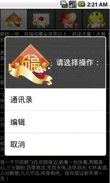 Adboo.A is an application that lets users select a pre-composed message from the provided list, and send it to their contacts. These messages are grouped into four categories: New Yearwishes, friendship, love, and jokes.
