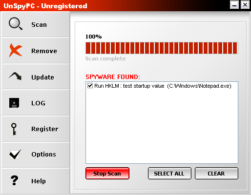 UnSpyPC offers their anti-spyware software for free download and installation. In the license terms, it states their application may incorrectly identify harmless files or registry entries. This information is not presented to the user through the user interface. UnSpyPC requires purchase before it will remove anything.