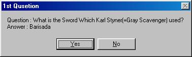 Question : What is the Sword Which Karl Styner(=Gray Scavenger) used? Answer : Barisada