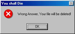 The virus activates its payload at 2 pm on April, 24th. At this time, the virus shows a series of dialogs. The first dialog asks the following question: