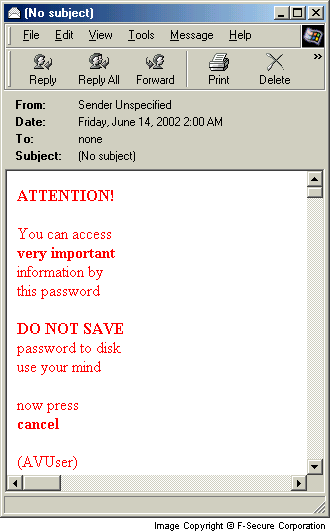 The executable attachment contains the worm's body. The 'password.txt' attachment contains the following text: