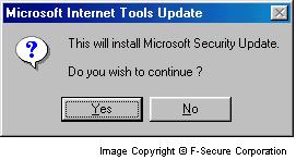 This worm's file is 122880 bytes long and it is a dropper for several worm components. Being run, the worm's dropper outputs a dialog box asking a user if he wants to install a security update.