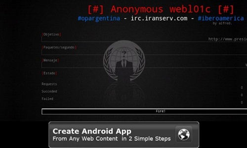 When executed, it opens up to a website(http://[...]pastehtml.com/[...]tom9l.html) that contains the Javascript to perform denial of service attack on a target.