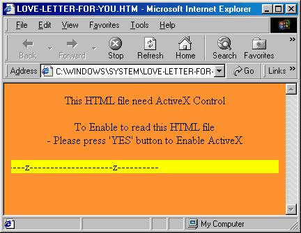 Then the worm uses Outlook to mass mail itself to everyone in each address book. The message that it sends looks like this: