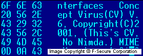 Apparently the author of Nimda was offended because his virus wasn't named "Concept Virus" like he wanted. The virus code contains a copyright text string which is never displayed, saying "Concept Virus(CV) V.6, Copyright(C)2001, (This's CV, No Nimda.)"