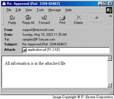 During late 18th of May / early 19th of May 2003, F-Secure received several submissions of this virus from USA, UK, Denmark and New Zealand.
