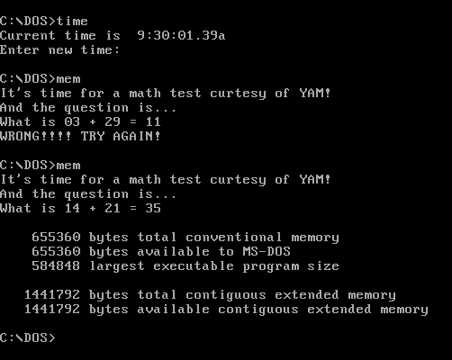 PS-MPC.Math-test is one of the viruses created with Phalcon/Skism Mass Produced Code Generator. The virus stays resident in memory and infects practically all executed COM and EXE programs. It activates every day between 9 and 10 a.m., displays some simple summing problems and demands that the user solve them. If the user doesn't get the answer right, the virus won't execute the requested program.