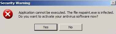 To pressure the user further, SysGuard prevents some programs from launching, then displays the following message alleging that the program is infected and asking the user to 'start your antivirus software':