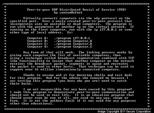 The worm also contains a backdoor that listens to UDP port 2002, and can be controlled remotely. The backdoor contains the ability to upload and execute arbitrary programs in the infected host. It also contains the functionality to perform various denial of service attacks. This backdoor is very similar to the one within the Scalper worm.