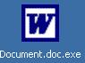The attachment name used is Document.doc.exe. The attachment uses the Microsoft Word icon to disguise its executable nature and deceive the user into believing the attachment is a word document:
