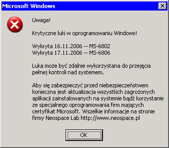 - HKLM\Software\Microsoft\Windows\CurrentVersion\Run"Windows Update Notifier" = "%sysdir%\winalert.exe"