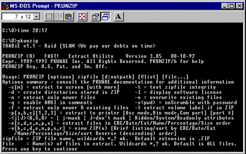 When activated the virus searches for EXE files and infects them (50-100 at a time for Toadie.7800 version). This might cause a considerable decrease of perfomance on DOS-based and slow Windows systems. The delay after an infected file is run and before the original file code gets control can be up to 20 seconds if no disk cache program is installed.