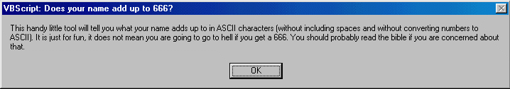 > Does your name add up to 666 in ASCII characters? Are you going to go to hell?