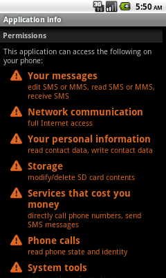 These services and permissions granted to the trojan enable it to obtain the following information from the device:
