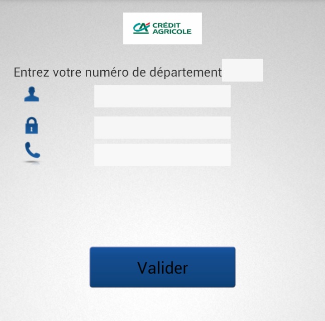 Trojan:Android/Facric appears to be a credentials authentication app from a regional French bank. When launched, the app asks the user for personal information, such as the user's username and password, phone number and department. If this information is provided, it is collected and forwarded to a remote server.