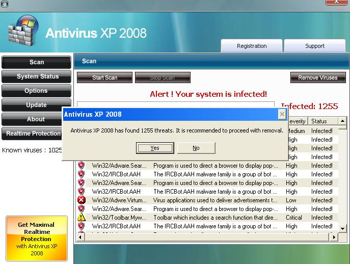 When Rogue:W32/AntivirusXP2008.E executes, it will show this window: