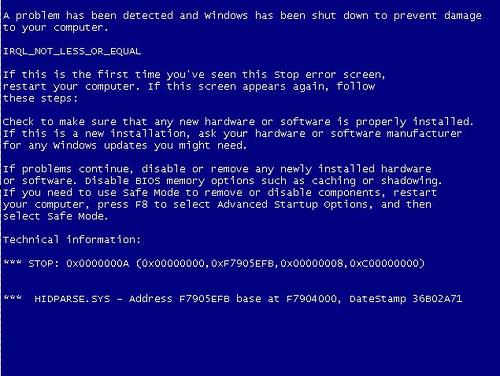 Leaving the system idle for 10 minutes brings up a screensaver which appears to be a 'blue screen of death' similar to this one: