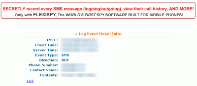 Flexispy.A records the following details from the victim's SMS message traffic: