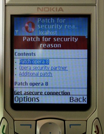If user has Opera installed in MMC card, he will see the modified version of Opera default content.