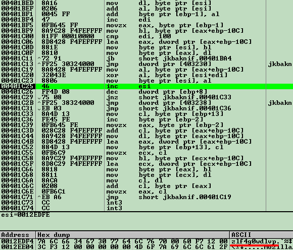 The IP address of the malicious link is password-protected; in the sample we received, the password was "countermode.ws".Once downloaded onto the system, the downloader completely decrypts the data file. EncryptionAll the possible strings, API names and other details of the downloaded file are completely encrypted using the encryption algorithm RC4 block cipher. Before decryption, the data file appears as: