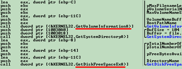 In the sample we analyzed, the trojan collects system information from the infected machine, specifically the serial number of the Windows drive and the size of the partition. Using this information, it then adds an additional layer of encryption and drops the malware in the temporary folder, using a value obtained from GetTickCount API for the filename.Feedel uses this information as an encryption/decryption RC4 key, to ensure that the malware cannot and will not be executed on any other machine. Incidentally, this also makes analysis very difficult to perform.Feedel uses the system temporary folder, %temp%. An example path is as follows:
