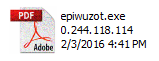 The ZIP file attachment most commonly uses the filenames "postnord_info_59278.exe", "bolletta_36135.exe", and "AUPOST_info_23884.exe". The attachment contains an executable program that uses a PDF file icon; this is a common technique used by malware authors to trick users into thinking that the file is a document rather than an executable program.
