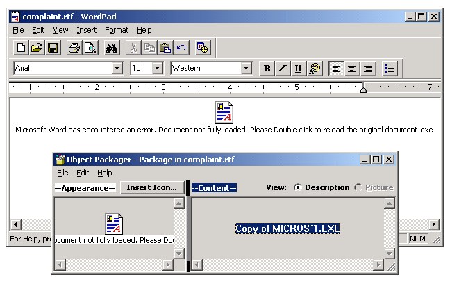Upon opening the RTF file, it will not trigger automatic execution of the embedded binary malware as it requires user intervention for Trojan-Downloader:W32/Streedom.A to run. This might be done by exporting the file, then executing it or by simply double clicking on the icon and allowing it to execute.