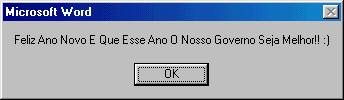 Vale.A contains a few payloads. They activate when the day is January 1, May 19, Sptember 20 and December 25. Then the virus shows different messages in Portuguese. The messages that Vale shows on January 1st looks as follows: