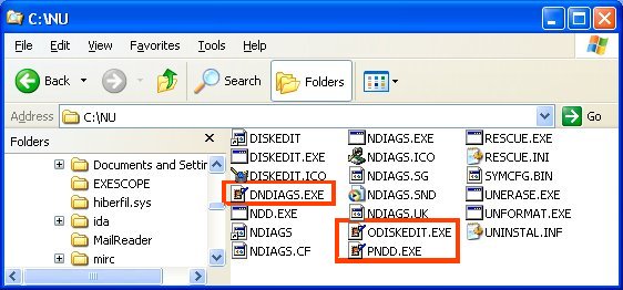 Then the virus scans all local hard drives and copies itself with different names to different directories on it. The virus "borrows" names of files located in a folder where it copies itself to, but in order not to overwrite these files, the virus changes its file name a bit - it adds one extra character to the beginning of its file name. For example if a virus finds a file named NDD.EXE in a folder, it will copy itself as PNDD.EXE or SNDD.EXE and so on. On the screenshot the malware's files are in red squares: