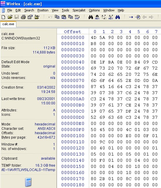 Vred.A is a proof-of-concept virus that is written in script language, that is used by the powerful computer forensics, data recovery, and IT security tool called WinHex.Here's a screenshot of the WinHex utility: