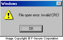First check if your F-Secure security program is using the latest updates, then try scanning the file again.